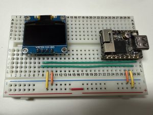 - ディスプレイモジュールとM5StampS3をブレッドボード上で接続する
