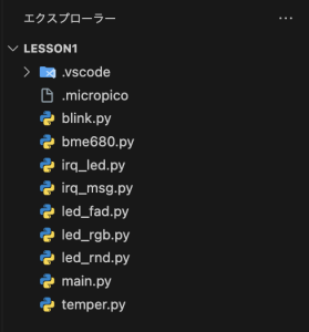 左側のエクスプローラにて右クリックして、「新しいファイル」を選択します。ファイル名を入力する欄が表示されるので、適当に名前を入力します。今回は、「display.py」としました。