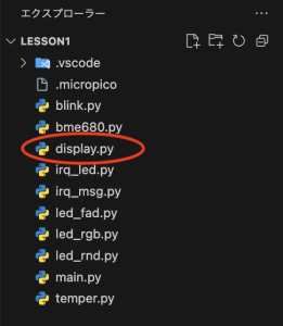 「display.py」を選択すると、エディター画面が開くので、下記コードを記入して保存します。