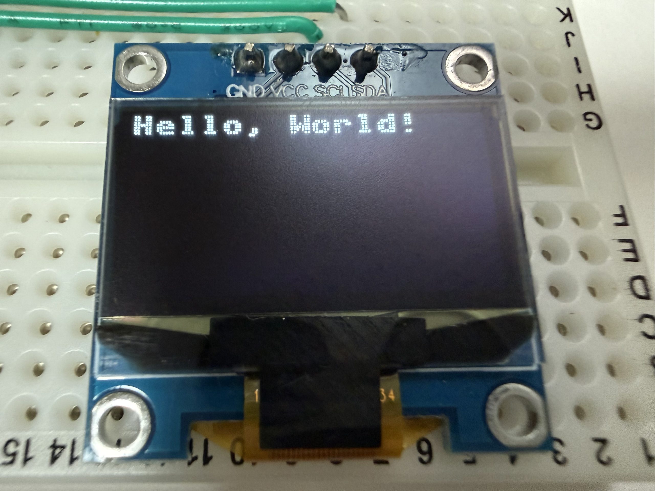 display.text('Hello World', 0, 0, 1) # x=0, y=0, colour=1 でテキストを描画